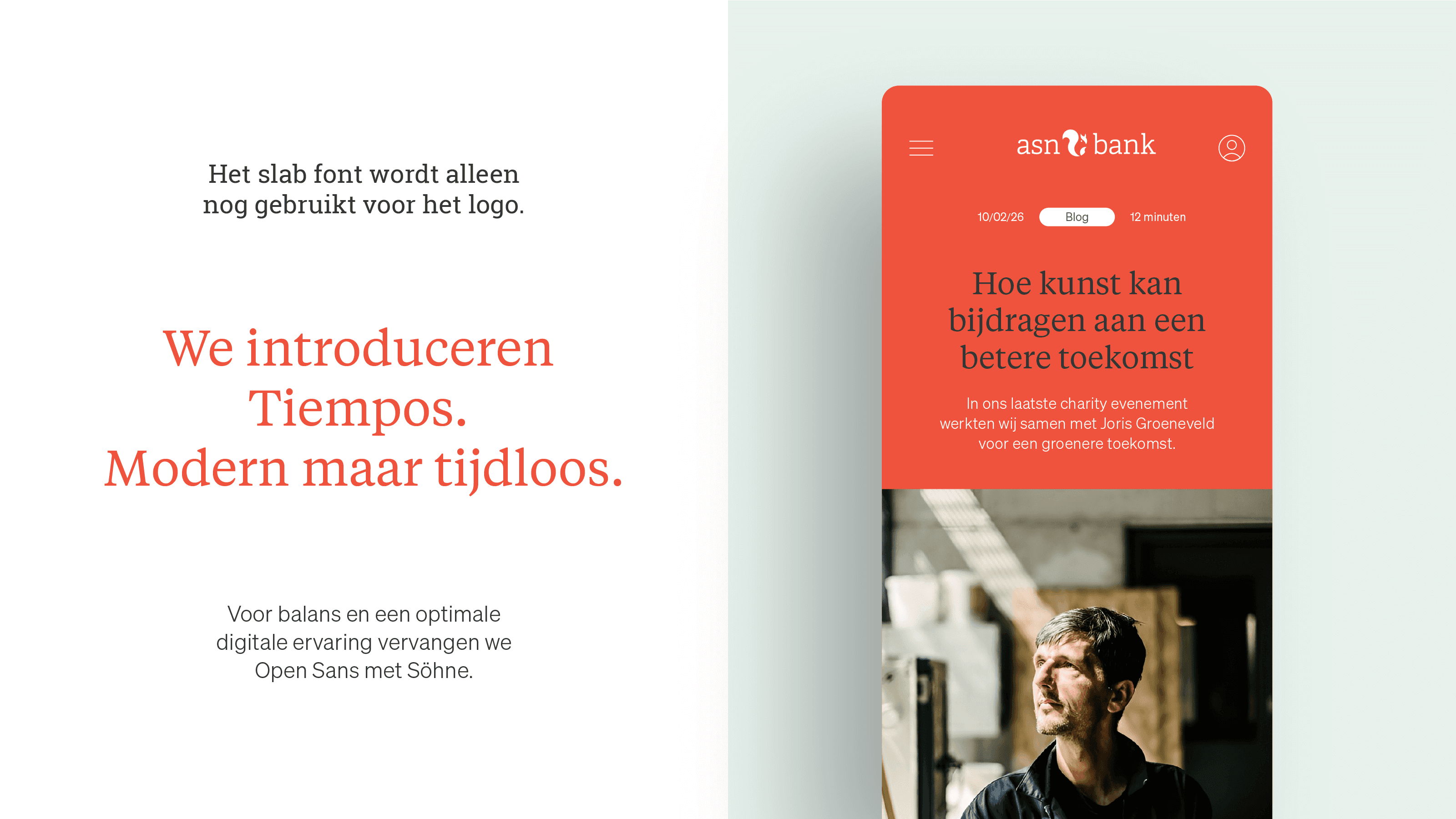 The rebrand introduces Tiempos for headers – modern yet timeless, warm without being soft. The slab font remains exclusive to the logo, keeping it distinctive. For body copy, Open Sans is replaced with Söhne for better digital readability and balance.