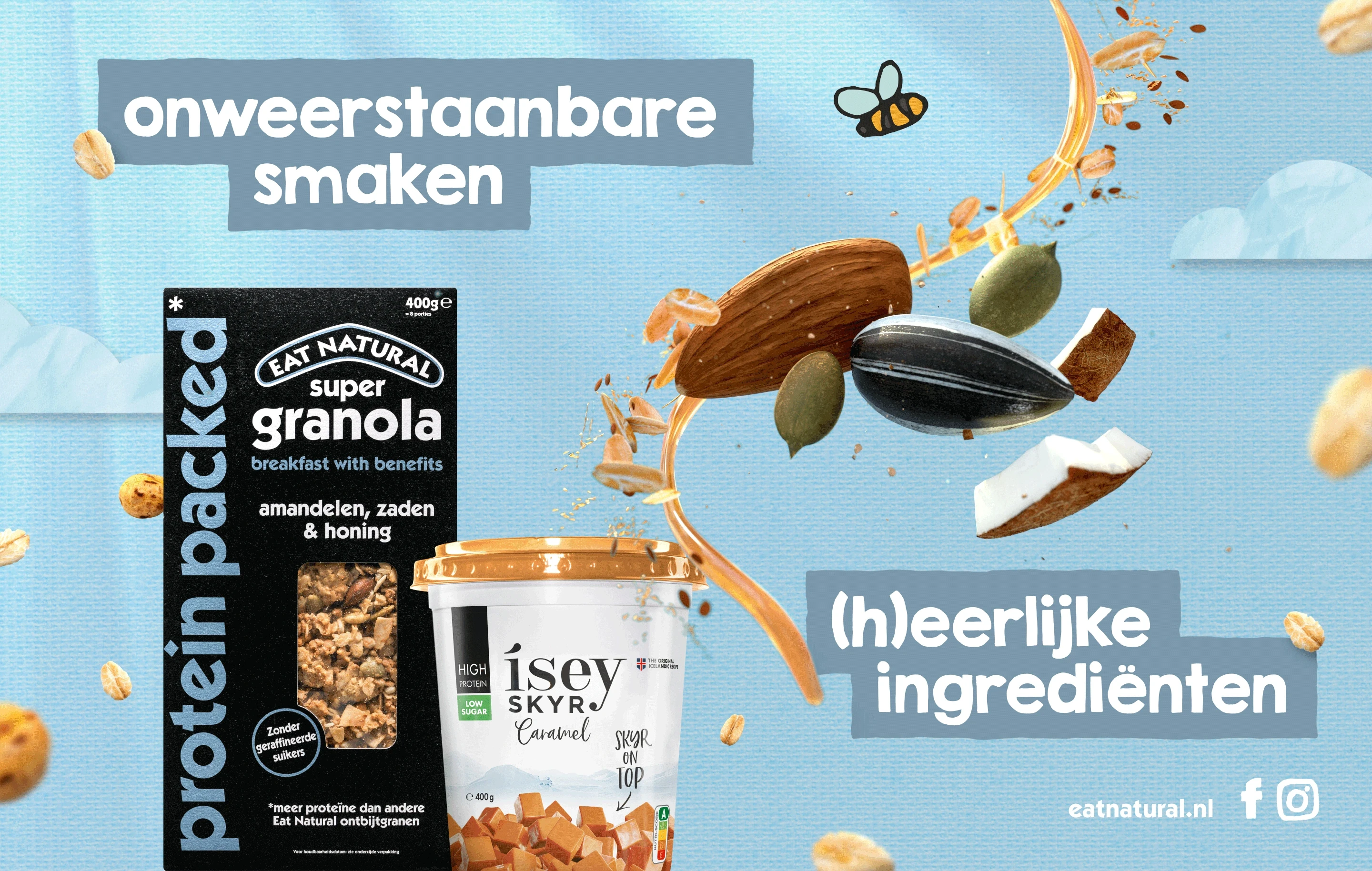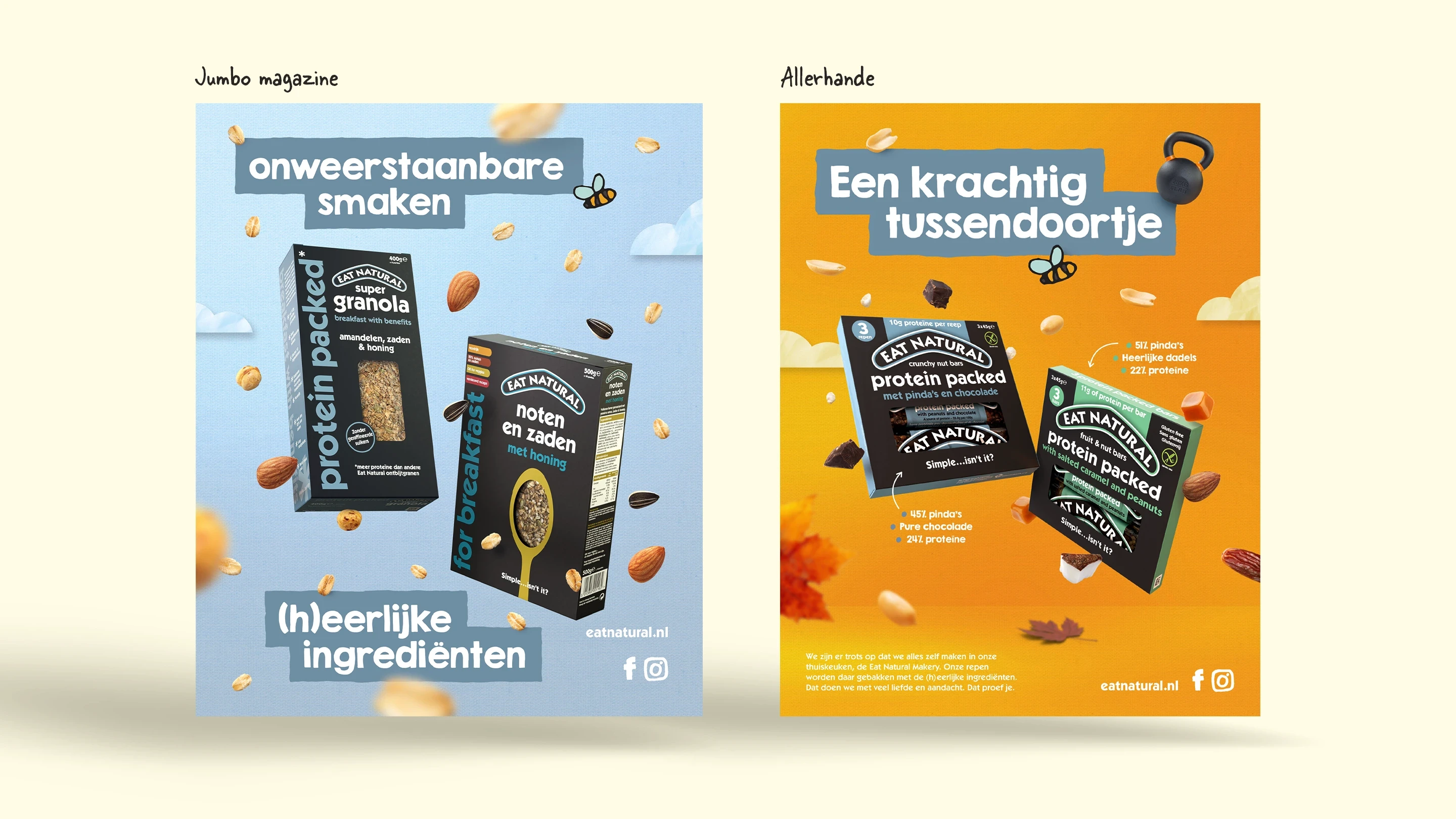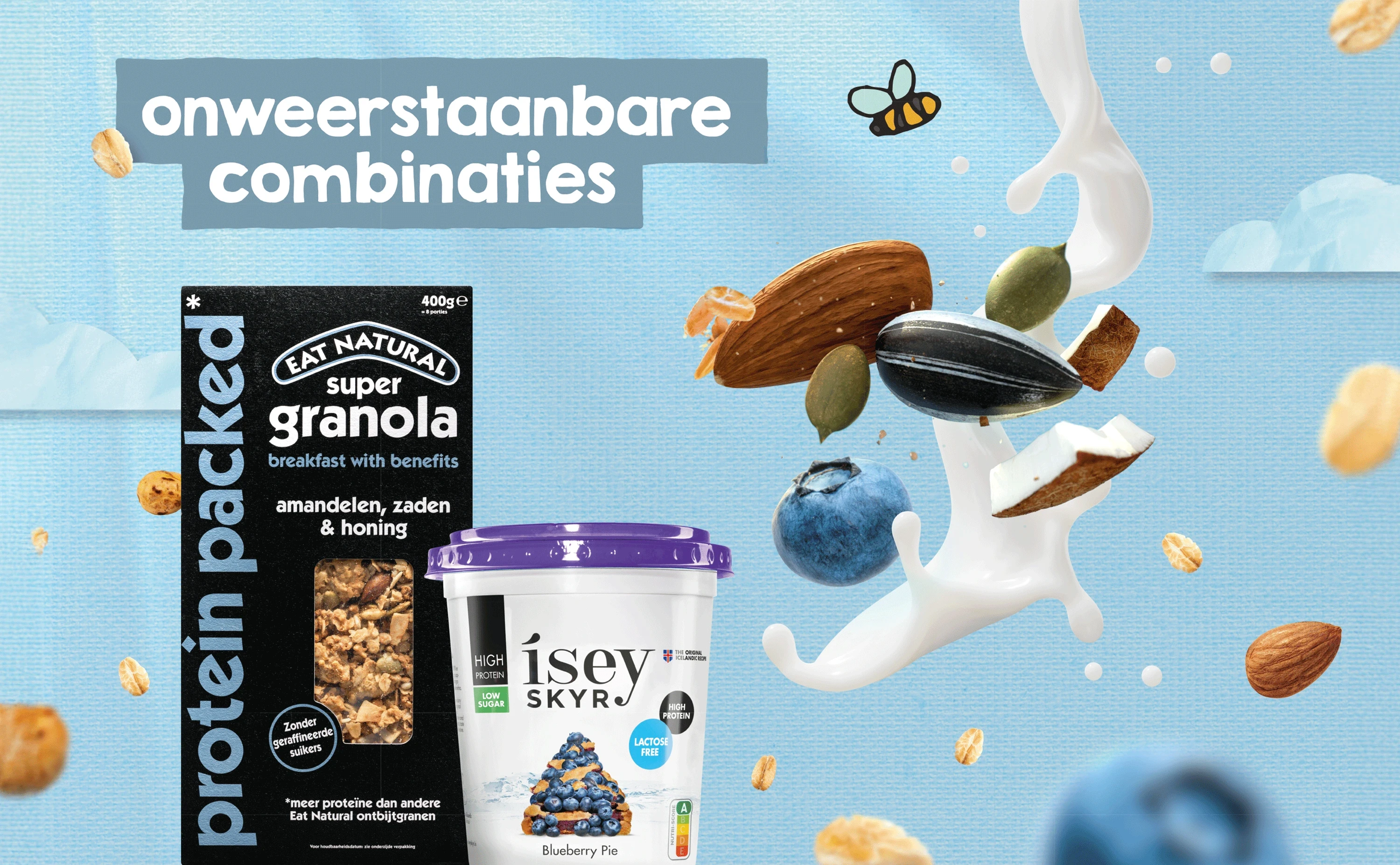 My role was to take that line and make it real. As Art Director and Campaign Designer, I translated the concept into a full campaign system — static and motion — across every touchpoint. I directed the 3D studio responsible for the ingredient visuals, developed the design language for social and display, and created print work for in-store activations, including a co-branded Jumbo promotion with Isey Skyr. The campaign also ran as cover visuals for Jumbo Magazine and the Allerhande — reaching millions of readers. Hero videos were produced in both Dutch and English for international use.